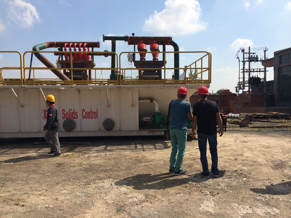 The mud system is engineer designed to clean, recycle and mixing drilling mud in one mud tank package. Yesterday, the Newzeland clients came to our factory to test the500GPM HDD mud system. The flow capacity is 500gpm + with shaker operating at 40 mesh screens and mud density 1.2g/cm³. It removes undesired drilled cuttings down to 12 microns with 4″ desilter cones. Compact design and small foot print allows it to be easily moved and transported .